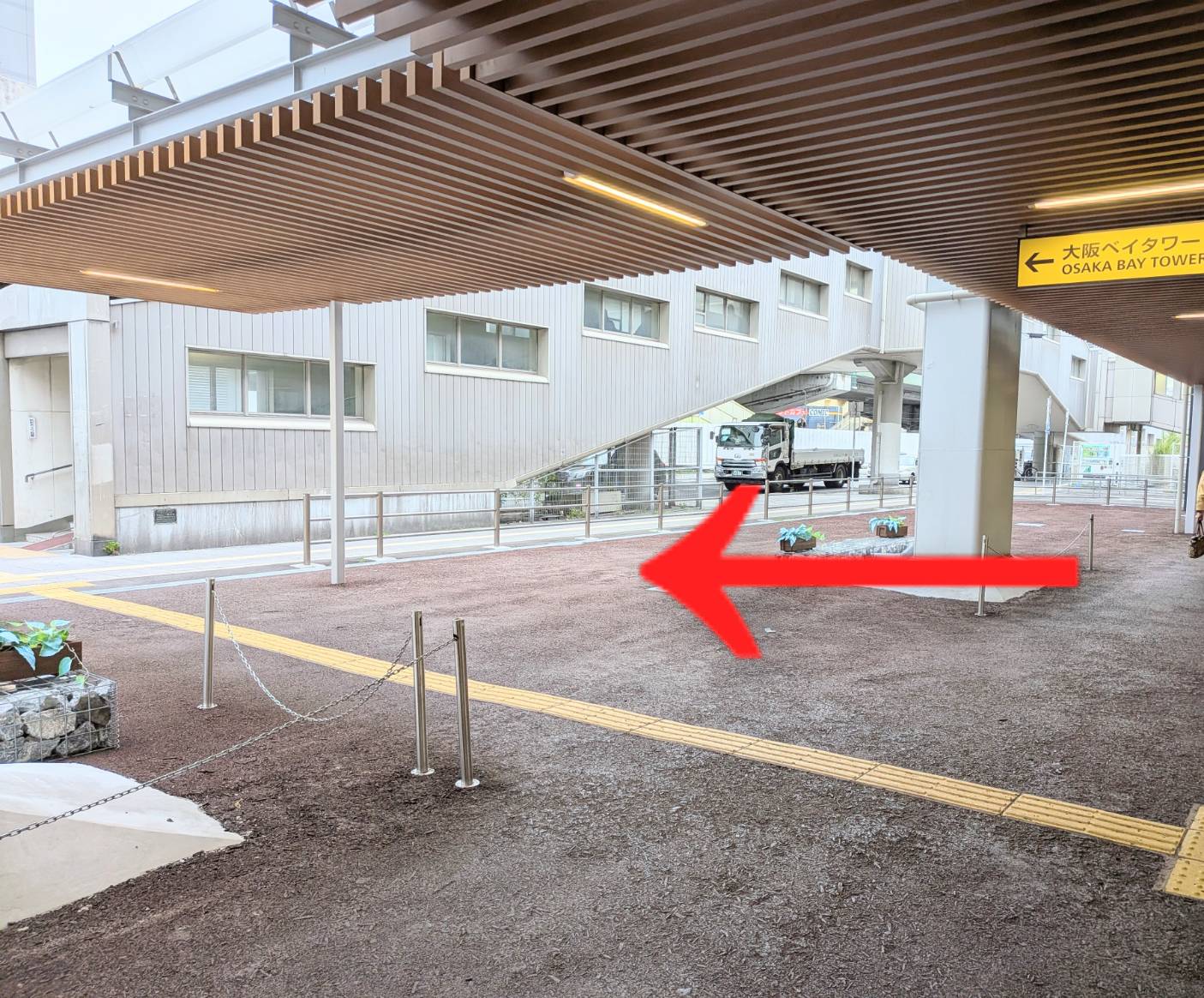 ベイタワーの看板通り、左側の階段を上がります。