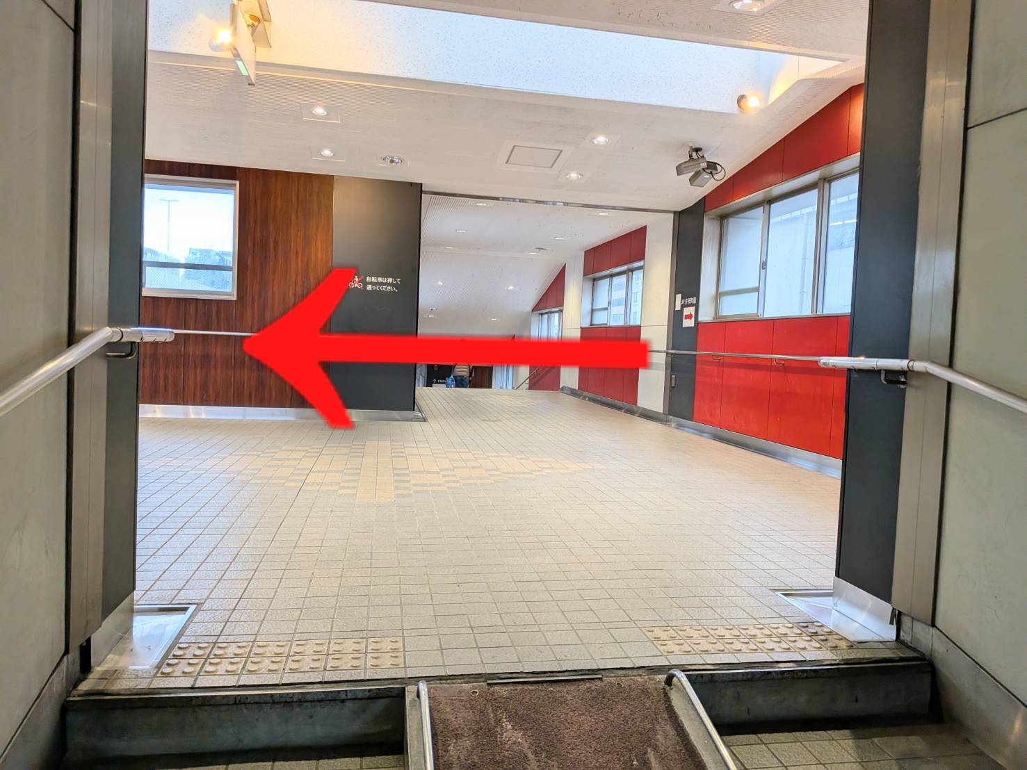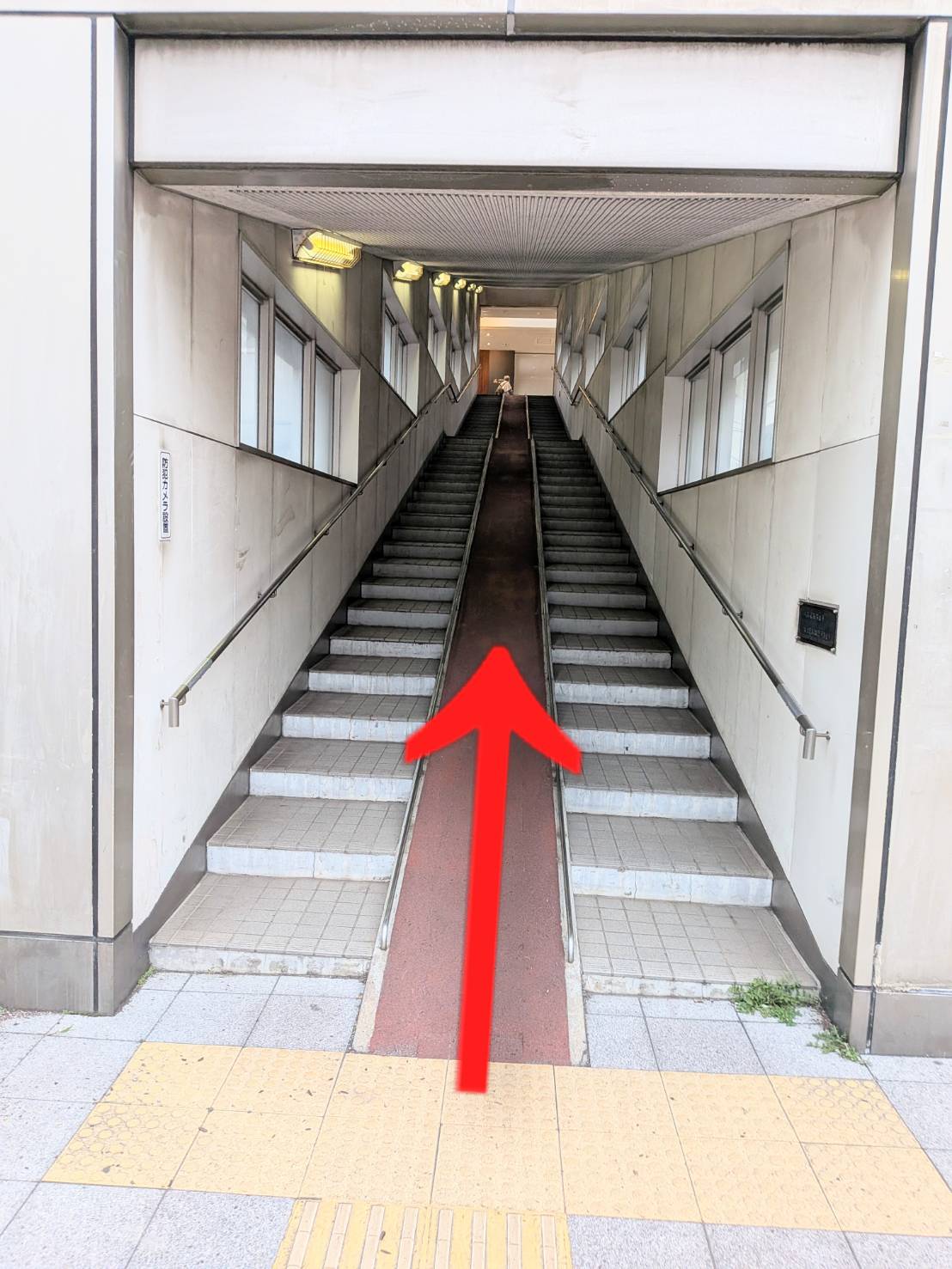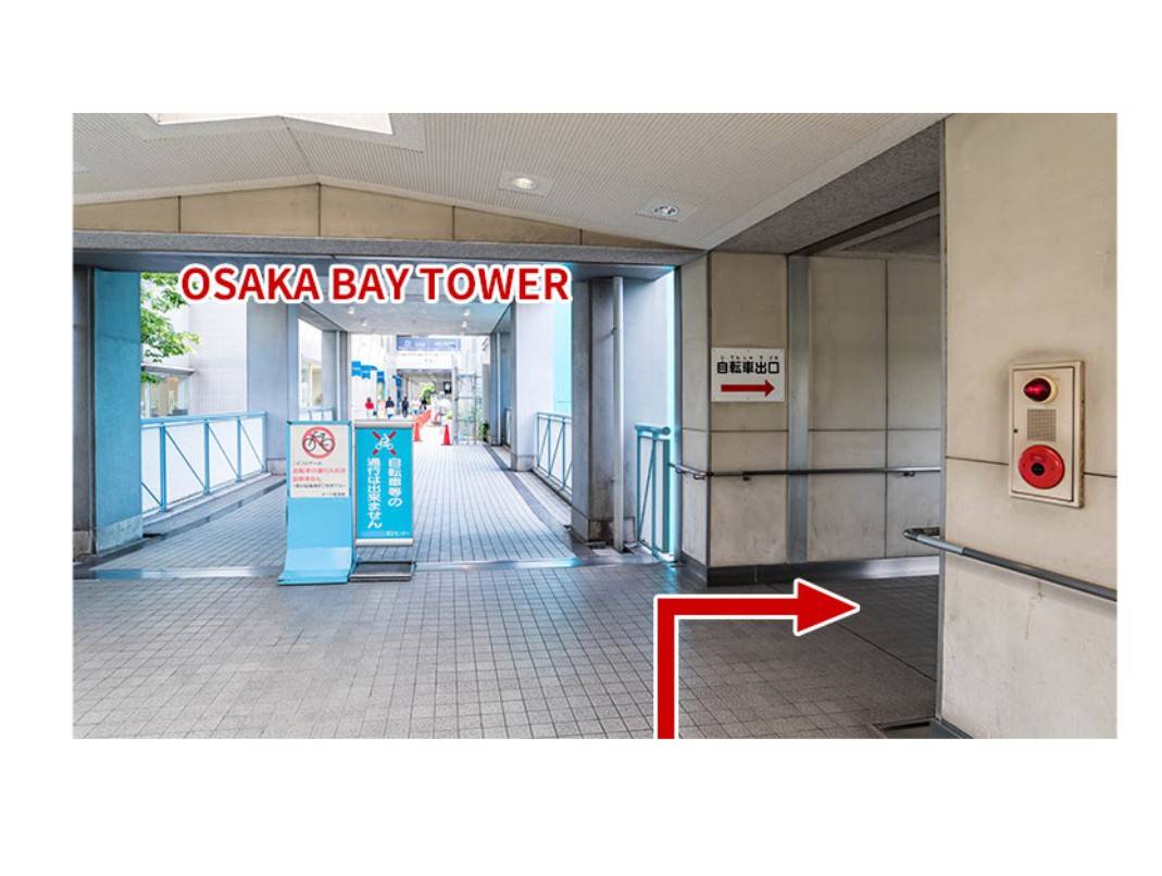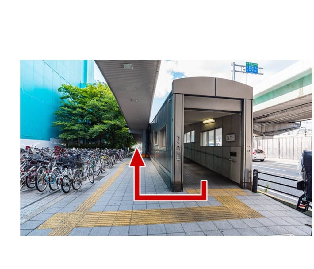 右側の自転車出口の通路に進みます。