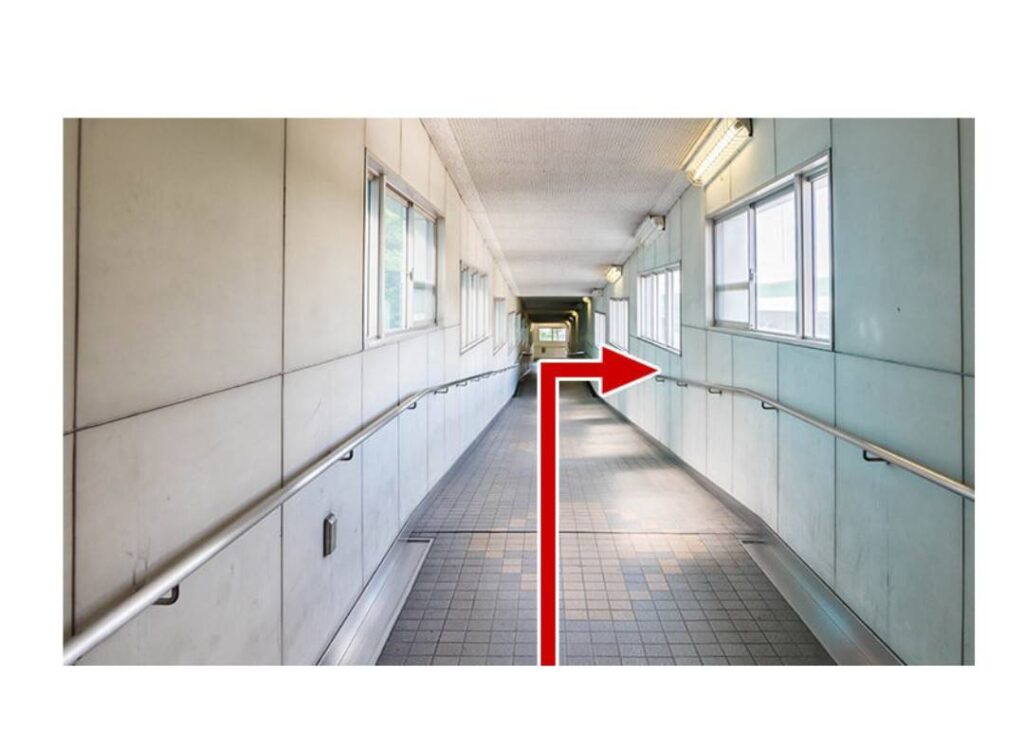 1つ目の通路を左側に曲がります。